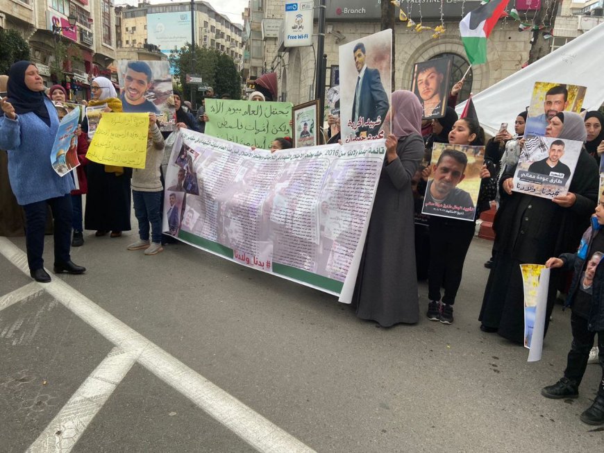 وقفة وسط رام الله لأهالي الشهداء المحتجزة جثامينهم في ثلاجات الاحتلال للمطالبة باستردادها